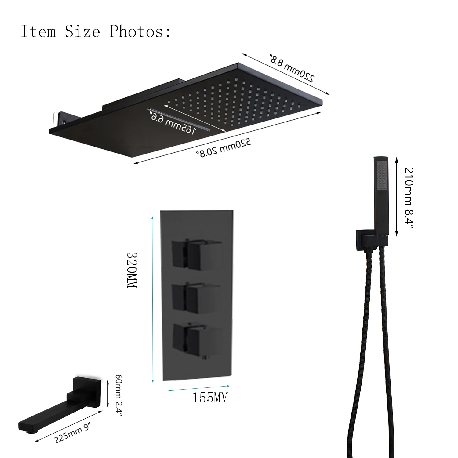 Термостатический Смеситель KEMAIDI, кран для ванны и душа, 4 способа, Настенный матовый черный Водопад, набор для душа