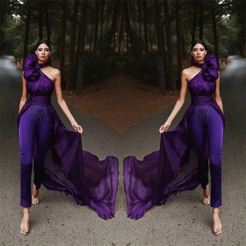 Женское вечернее платье со шлейфом, стильное фиолетовое платье-комбинезон с одним открытым плечом и брюками, 2020