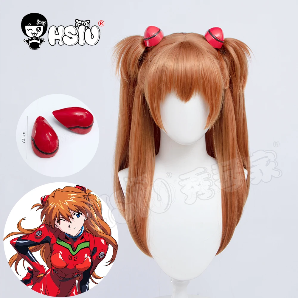 Парик для косплея Лэнгли HSIU ЕВА АСУКА, термостойкие синтетические волосы коричневого и красного цвета с двойным хвостом, с шапочкой