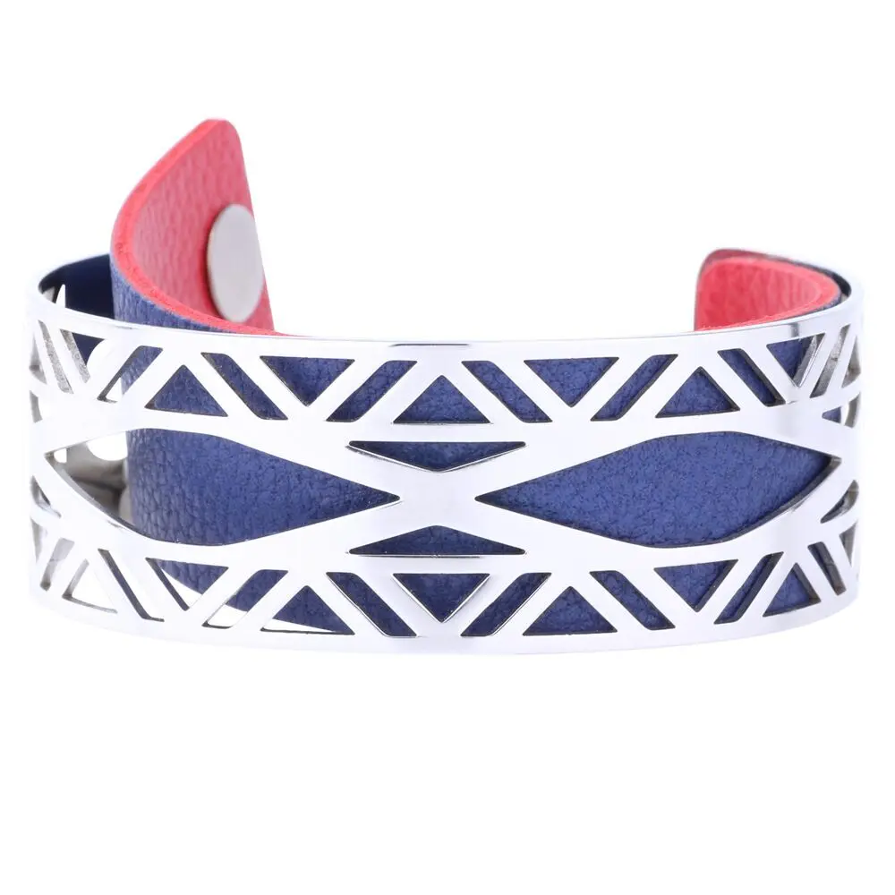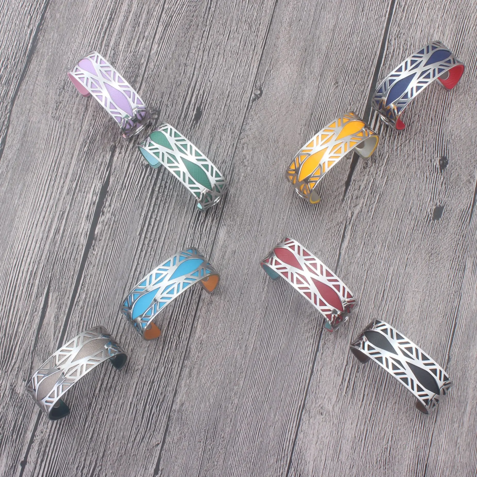 Женский Браслет-манжета из нержавеющей стали, со сменной кожей