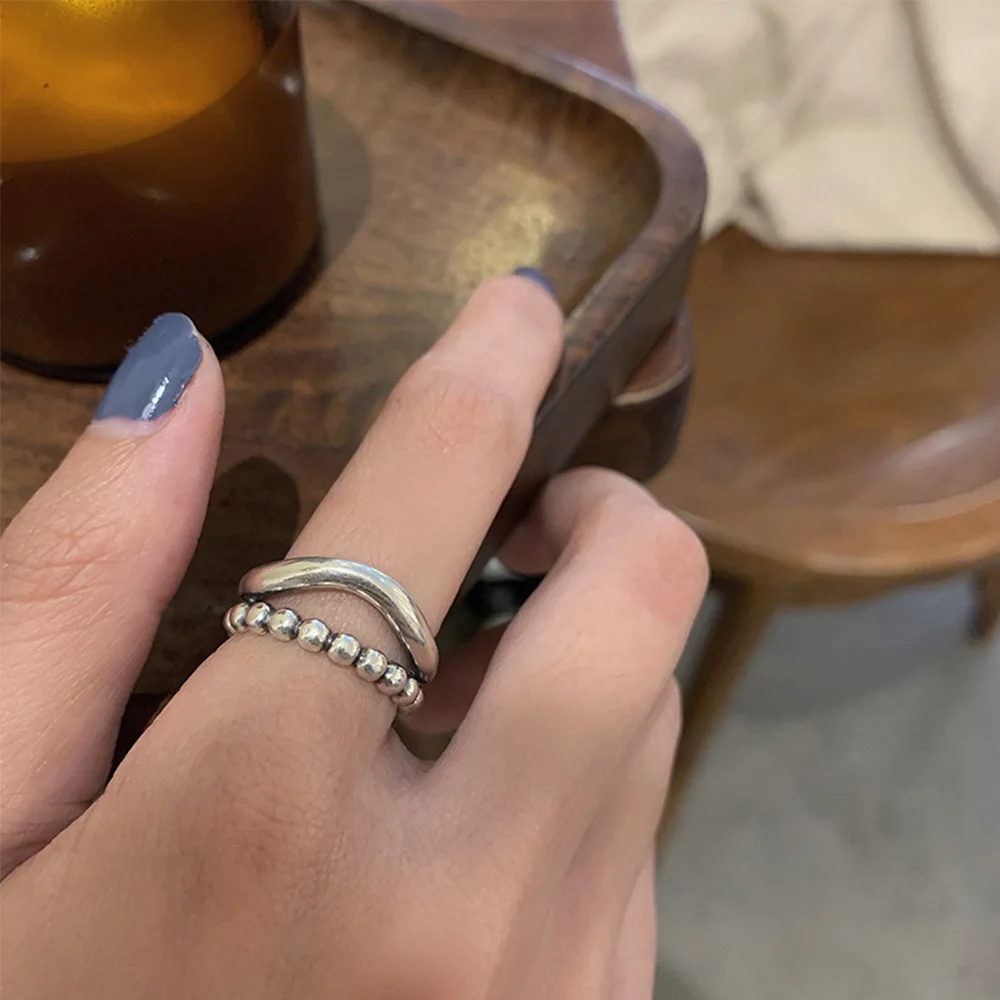 Толстые простой волновой круг кольца с геометрическим принтом ручной работы обручальное кольцо Мода двухслойная Открытие Кольца парные ювелирные кольца Подарки