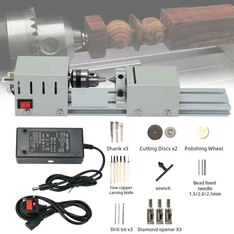 12-24V Mini Lathe Machine Tools Lathe Standard Set DIY Woodworking ...