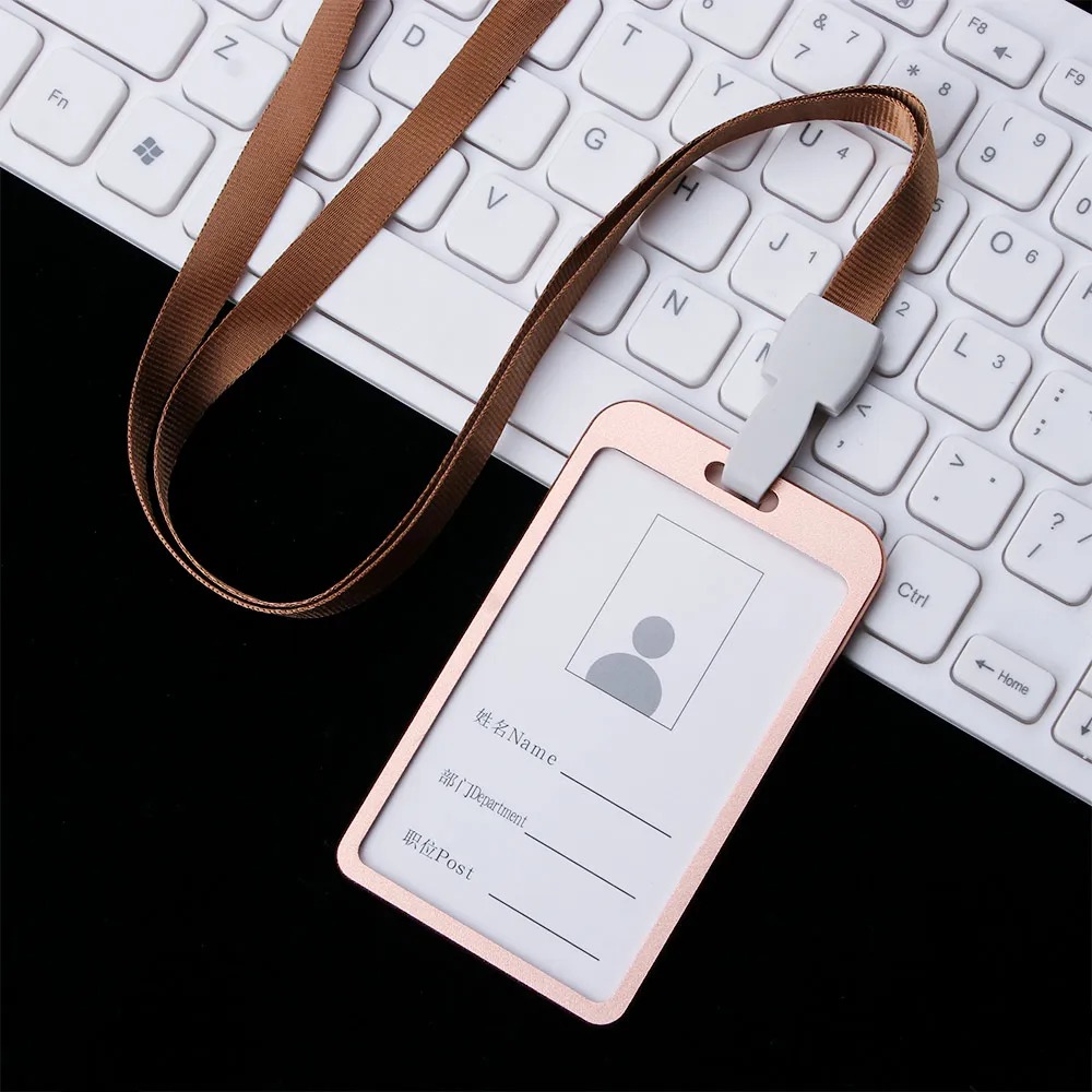 Алюминиевый Карманный бейдж унисекс для кредитных карт, чехол с ремешком на шею и биркой для удостоверения личности, деловые и рабочие принадлежности