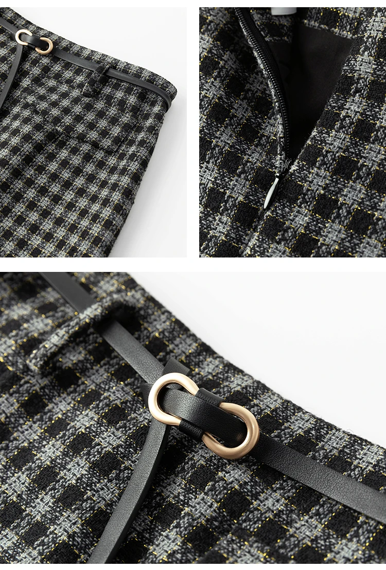 Юбка женская клетчатая с люрексом, с высокой талией, на осеньзиму, трапециевидная, черная, 2020