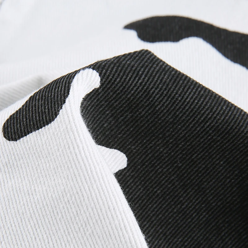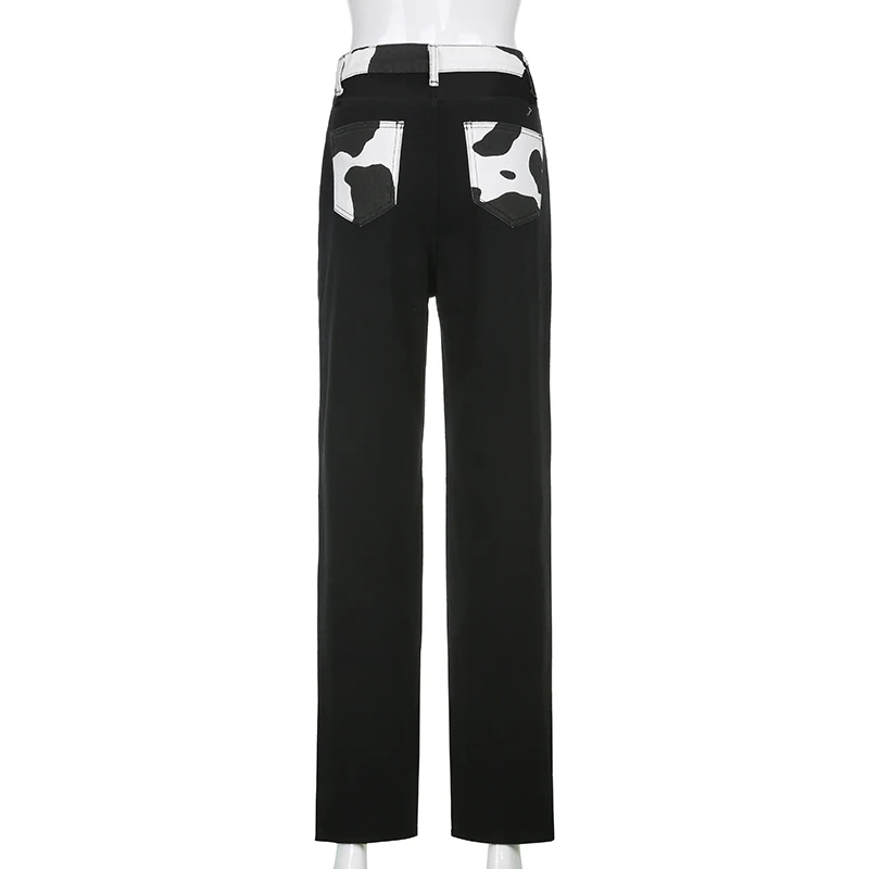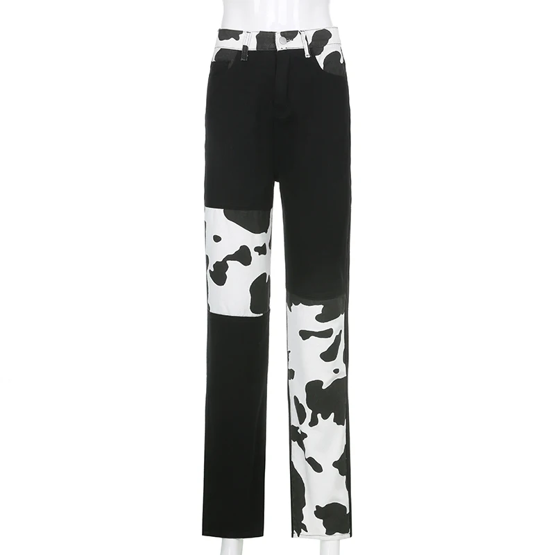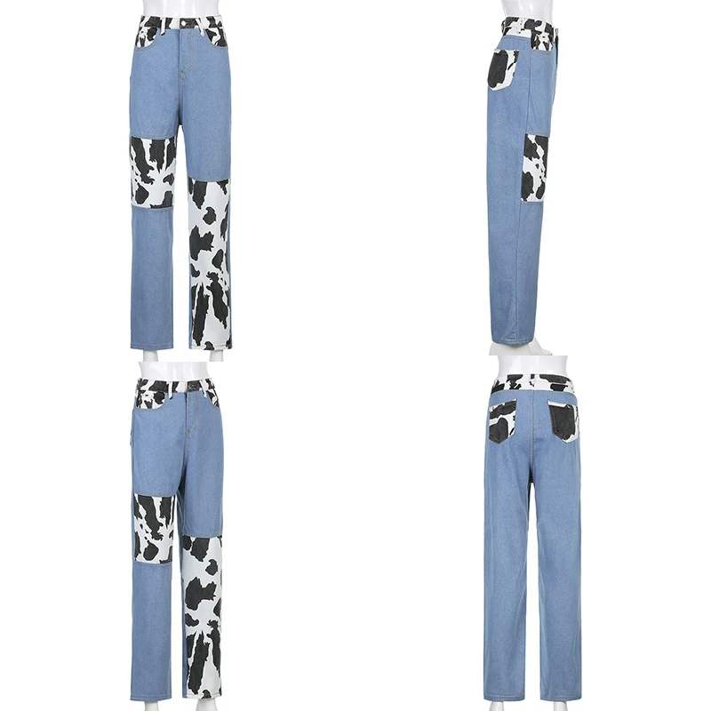 Прямые джинсы с принтом молочной коровы для девочек, Женские винтаж...
