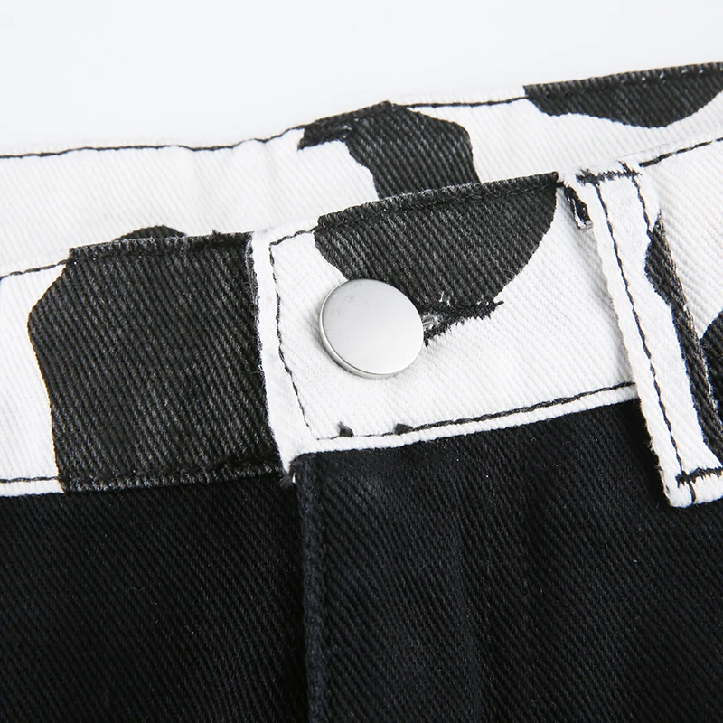Джинсы женские прямые облегающие с высокой талией и принтом коровы