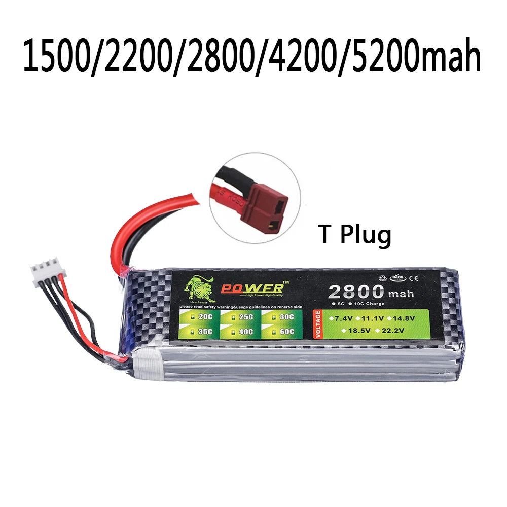 (T-разъем) LION POWER 1500 мАч 2200 мАч 2800 мАч 4200 мАч 5200 мАч 11,1 В литий-полимерный аккумулятор для радиоуправляемых игрушечных автомобилей, самолетов, вертолетов, дронов, лодок