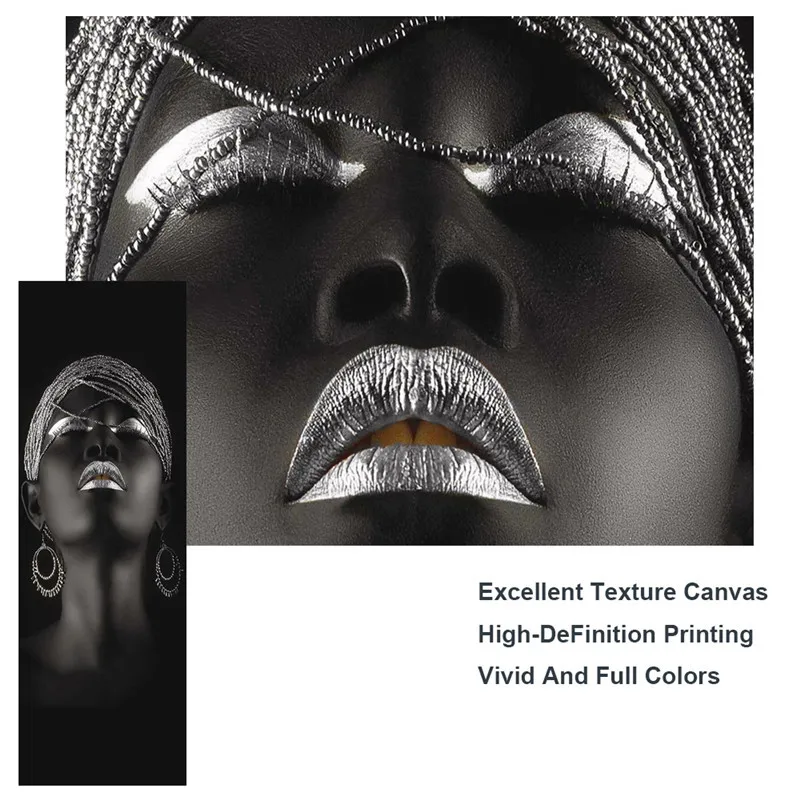 В африканском стиле женщина Серебряные ювелирные изделия на холсте настенные картины художественные плакаты и принты черного цвета женские художественные фотографии домашний декор