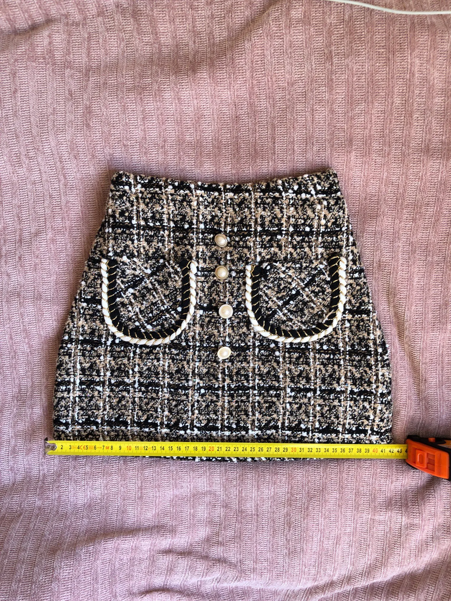 Размер 7Т: талия 26 см, от талии до низа юбки: 34,5 см. На талии сзади резинка, можно растянуть до 34 см. Пришита бирка 140, это вообще не на 140. На худой девочке 115 см - длина до колена. Сшита качественно, на тёплом подкладе. Только пуговицы пришиты хлипко, но можно подшить. Юбка понравилась. Дошла за 2-3 недели.