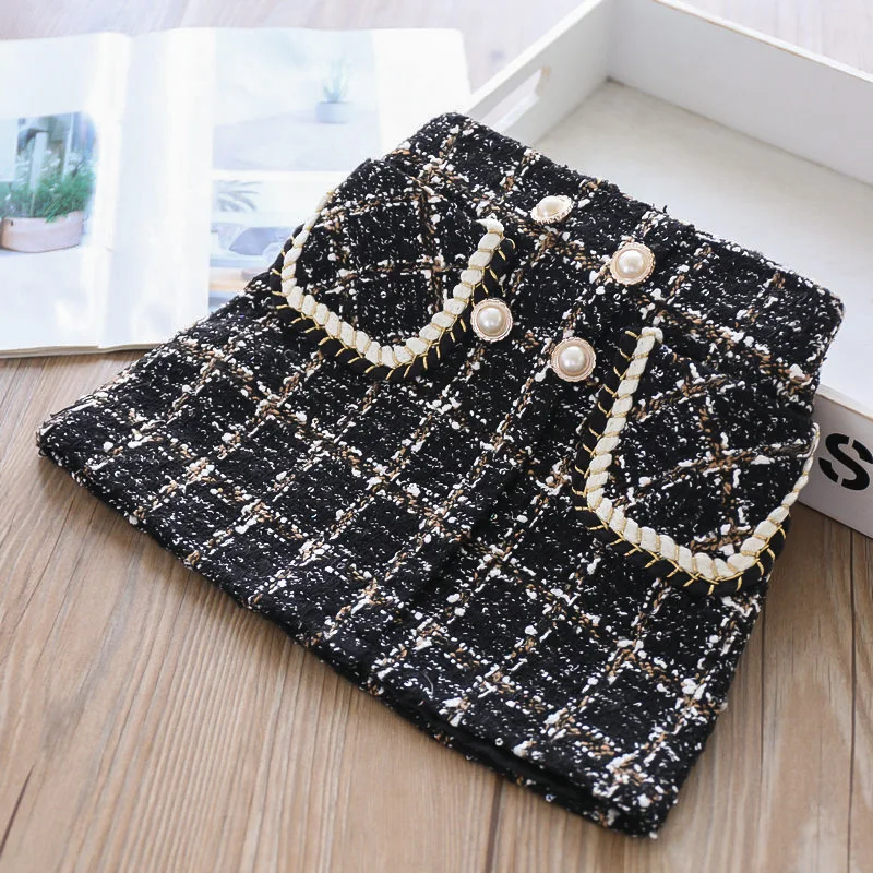 Детская шерстяная юбка для девочек, зимняя клетчатая юбка, От 2 до 7 лет