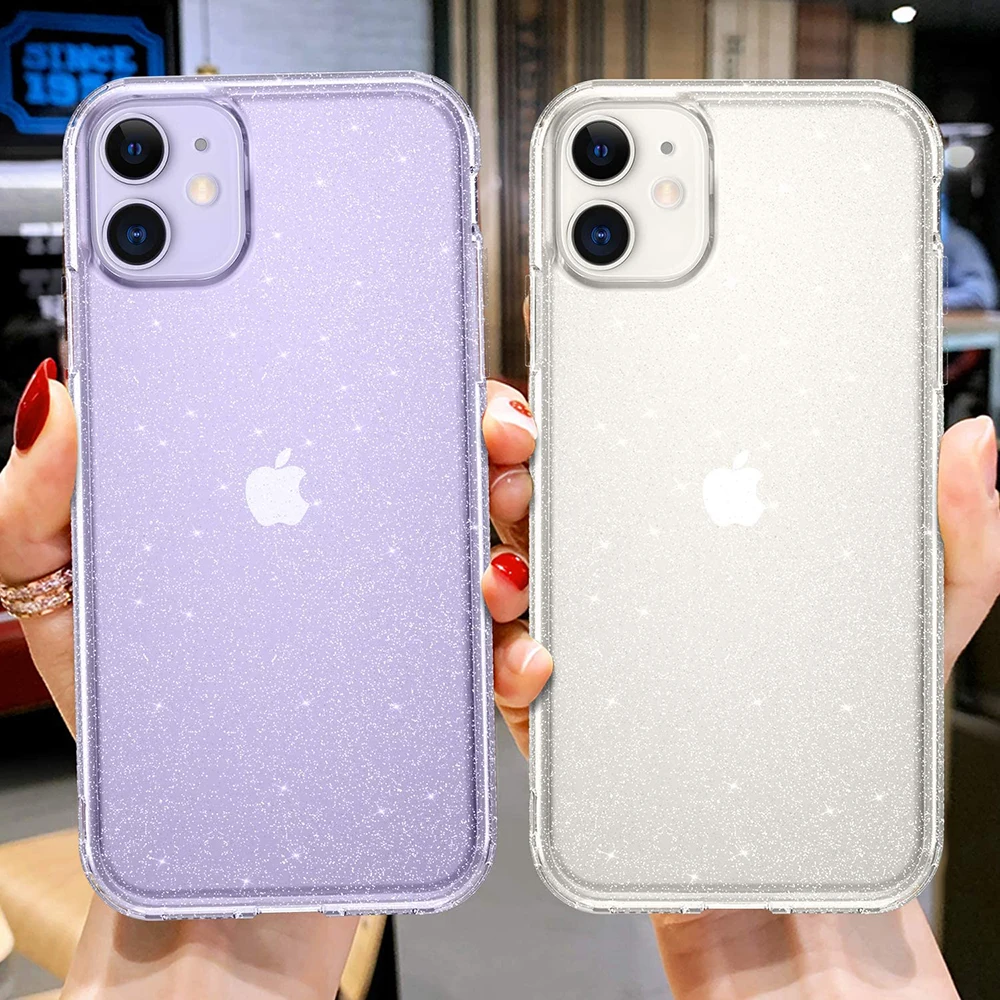 Блестящий Прозрачный чехол для iPhone 11 Pro Max 12 Mini XS X XR 7 8 Plus 6S SE 2020