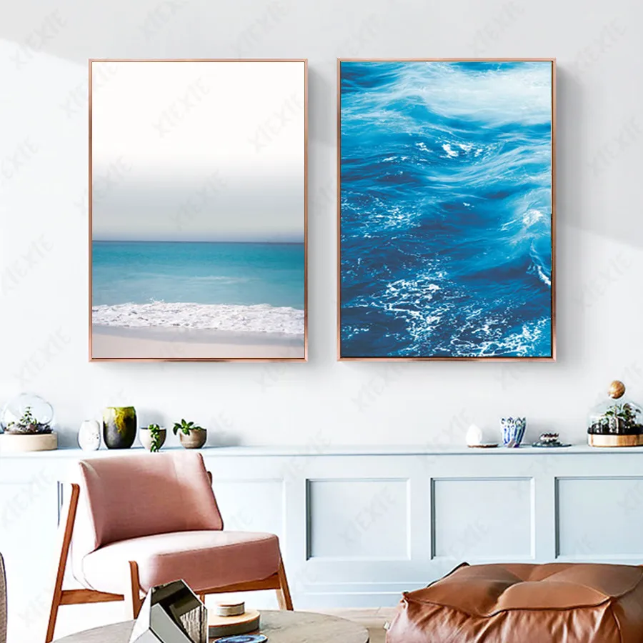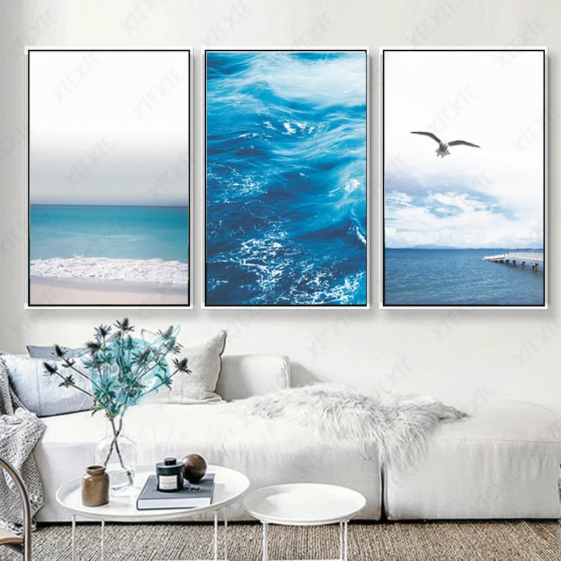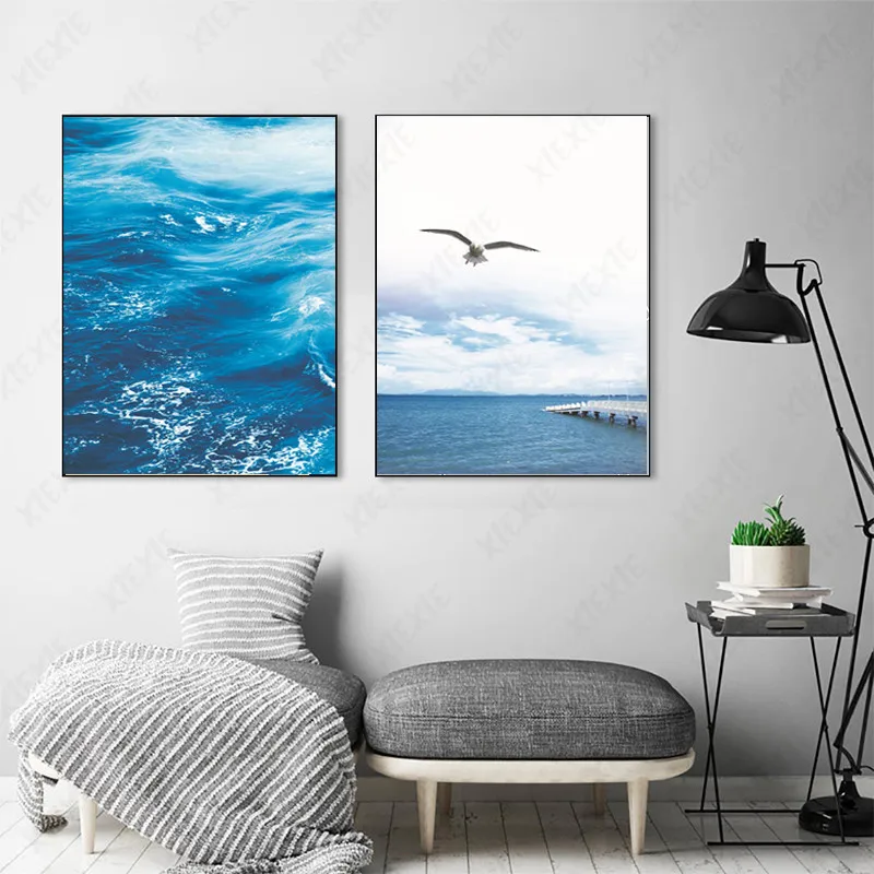 Синий Чайка пейзаж холст живопись литературный дыхание океанская волна литературное изображение свежий постер для спальни отеля гостиной