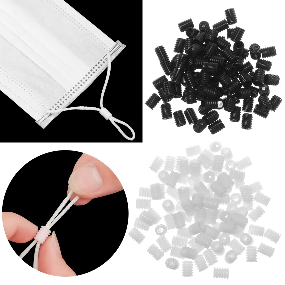 50100 штук черно-белые прозрачные силиконовые жгутовые застежки переключатели для маска затягивающий шнурок регулируемый ремень застежка для шнура кнопка блокировки