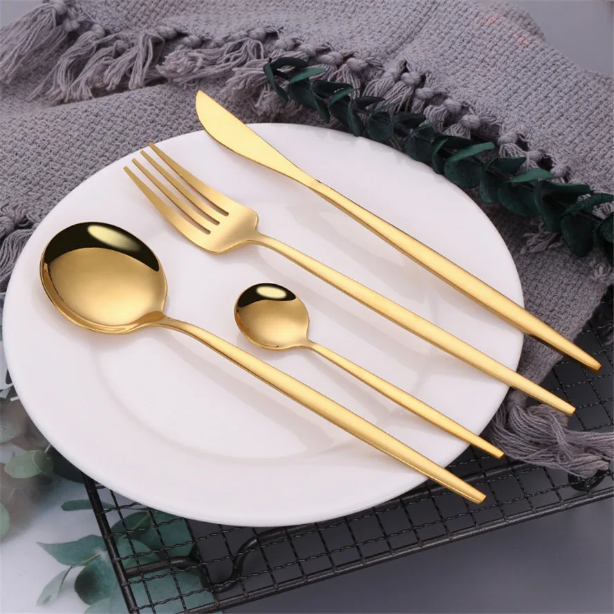 Набор столовых приборов из нержавеющей стали зеркальная Золотая десертная ложка и Чайная Вилка Нож кухонный набор ледяная ложка палочки для еды полный обеденный набор