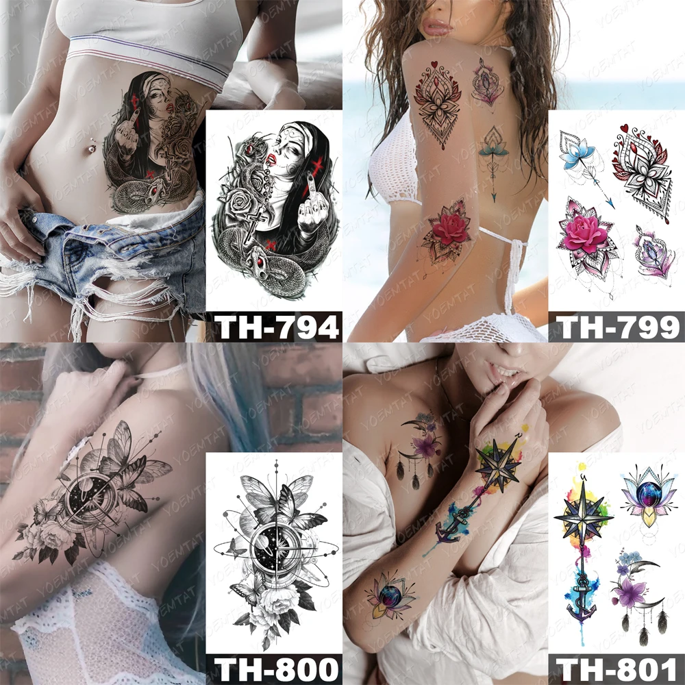 Водостойкие временные татуировки наклейки цвет Лев цветок каракули флеш Татуировки женские милые акварельные боди-арт Поддельные рукава татуировки