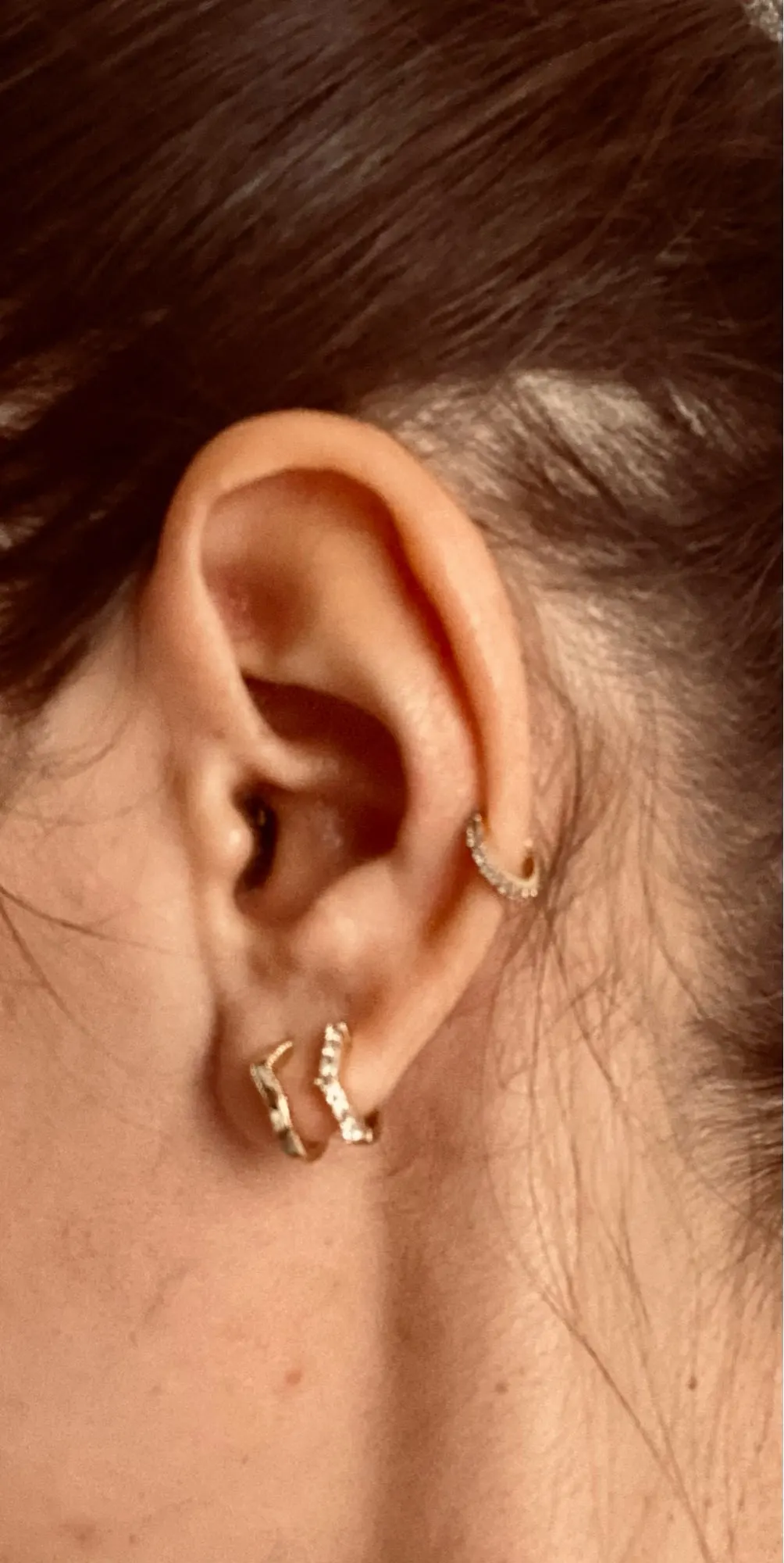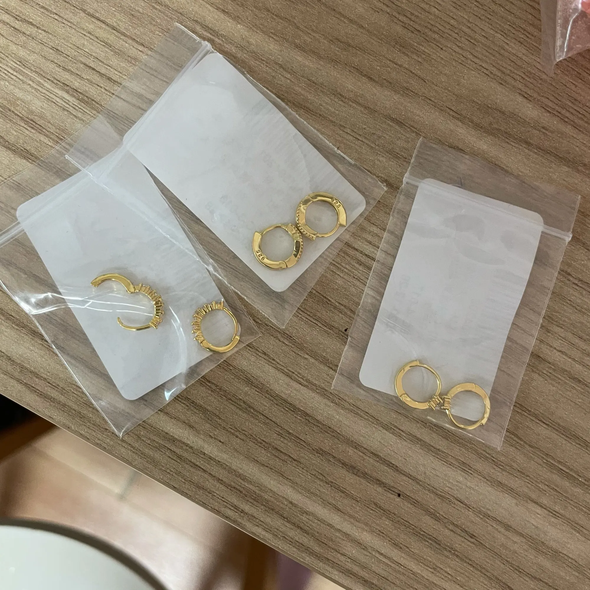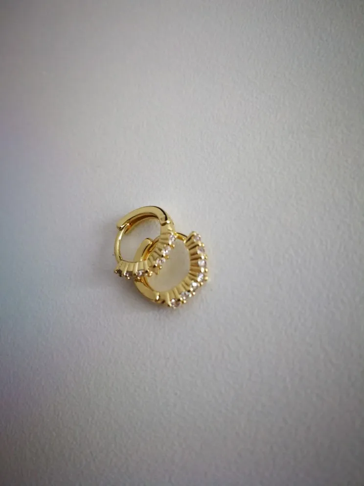Серьги-кольца женские маленькие, простой золотистый, циркон в один ряд