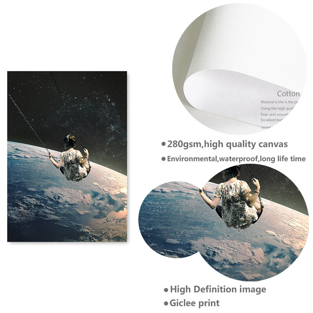 Ночное небо художественные принты земли холст постеры сюрреалистичность галактика космическая Луна холст живопись Скандинавия космические настенные картины Sci-Fi Декор