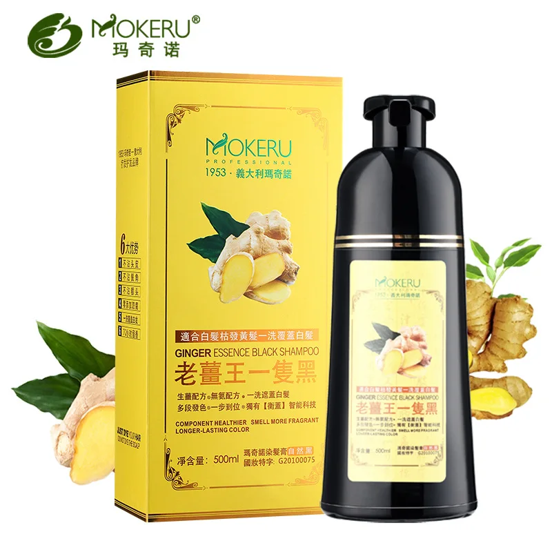 Mokeru Ginger shampoo травяной Неаллергический натуральный Быстросохнущий седый шампунь для черных волос краска для белых волос окрашивание 400 мл