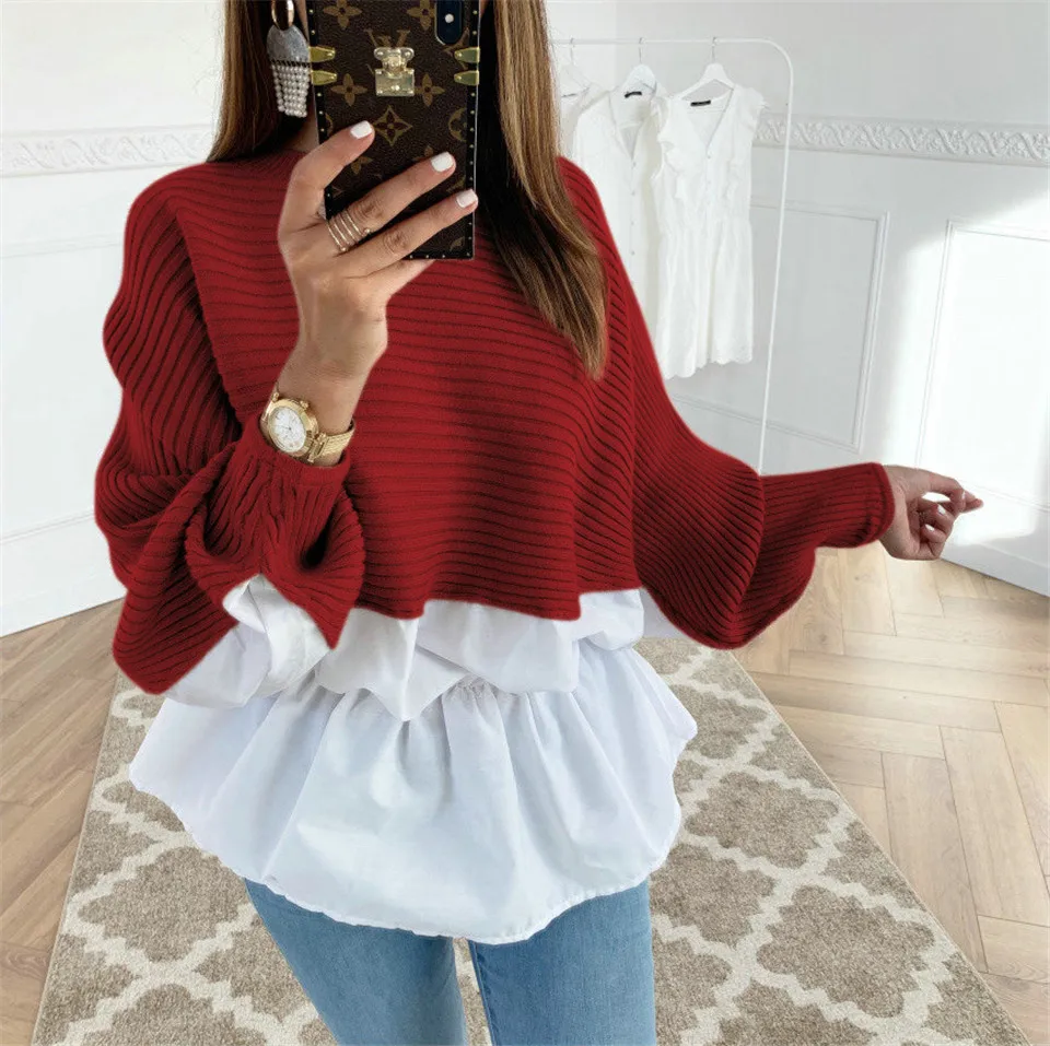 Пуловер женский Meihuida, с длинным рукавом, в стиле пэчворк