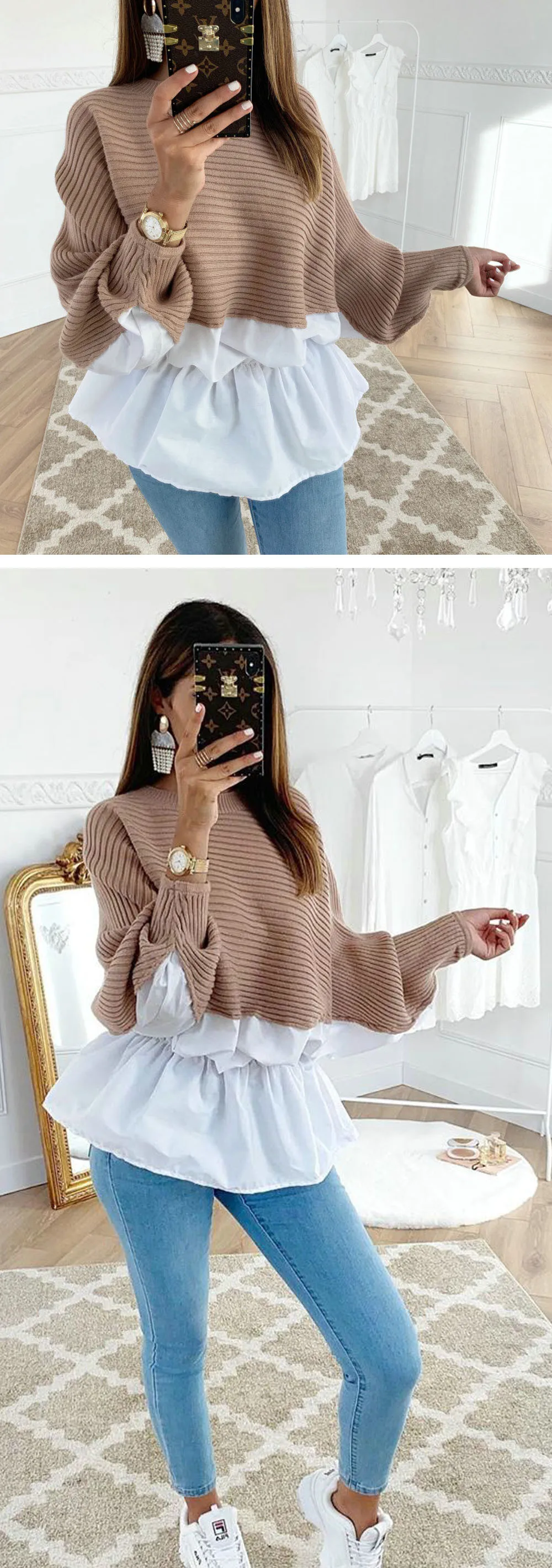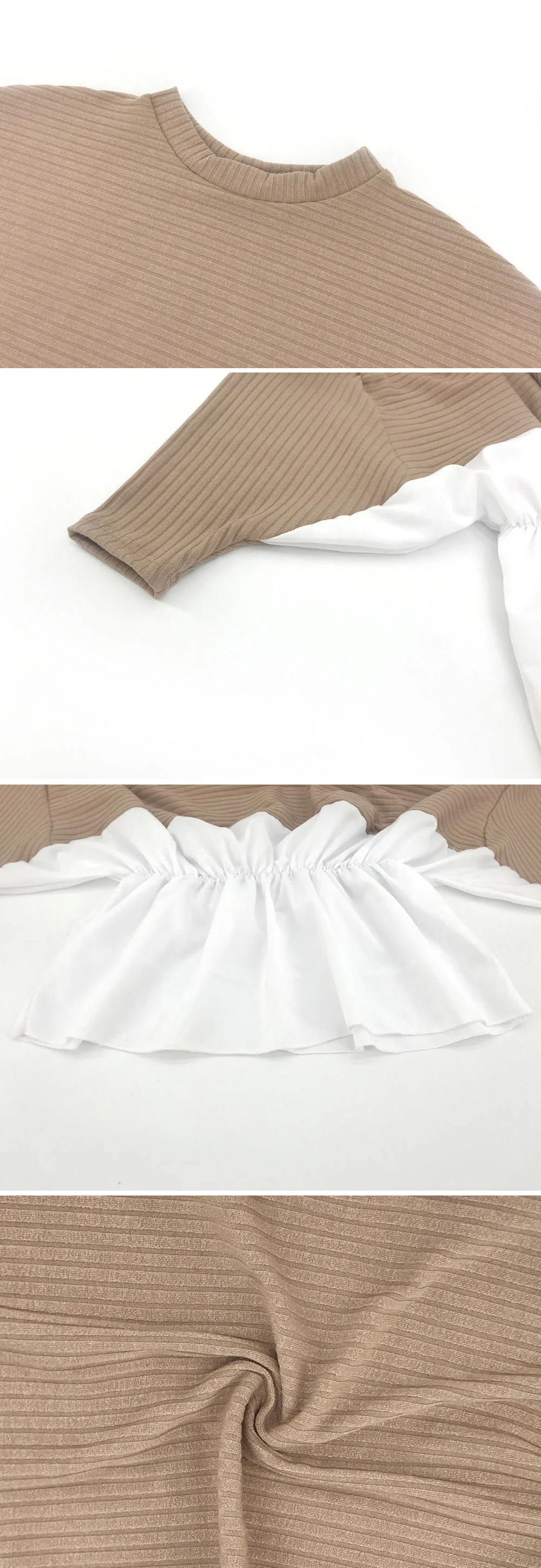 Модная женская футболка, уличная одежда, топ с круглым вырезом и имитацией двух цветов в стиле пэчворк, элегантные женские повседневные рубашки на осень и зиму