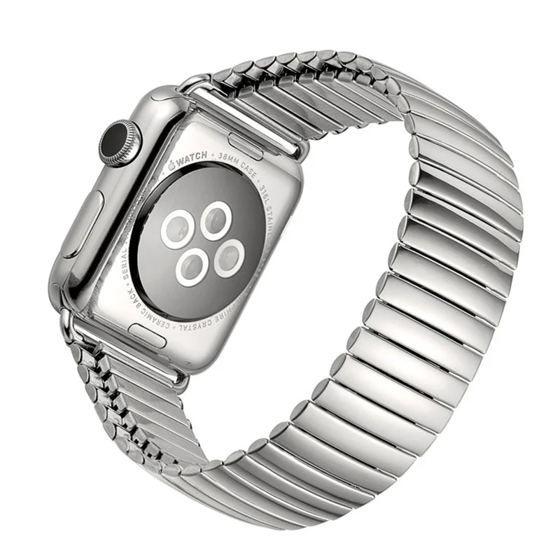 Описание: 1.100% новинка, высокое качество 2. Свободно масштабируемый, идеально подходит для ваших часов 3. Тонкая ручная работа и стильный дизайн 4. Идеально подходит в качестве подарка для ваших друзей и семьи. Характеристики-Длина: от 15 см (нормальная) до 30 см (упругая до максимума)-Цвет: серебристый-Совместимость с: для Apple Watch серии 5 4 3 2 1 комплектация: 1 ремешок из нержавеющей стали (часы в комплект не входят)