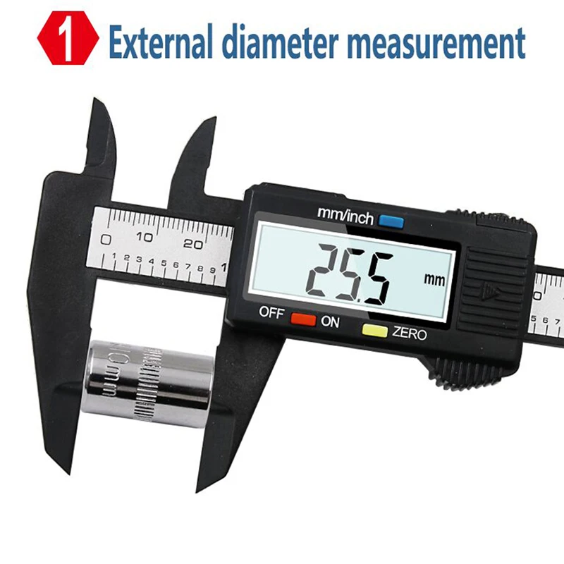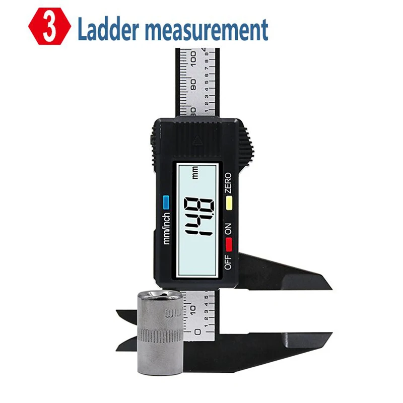 Название продукта: штангенциркульМатериал корпуса: Высокопрочный пластик PA66Материал головки: крышка из АБС-пластикаДиапазон измерения: 150 мм/6 дюймовРазрешение: 0,1 мм/0,01 дюймаТочность: ± 0,2 мм