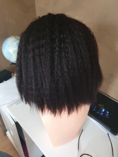 this wig is super cute . so much in love with this kinky straight bob human hair, I'm very satisfied with this hair, no smell at all, and I received my hair less than a week. I will order again ❤️ and the seller communication was very accurate. thank you Seller