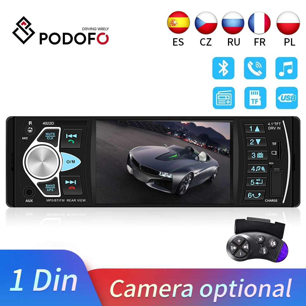 Podofo Автомагнитола 4022D 4,1 "аудио стерео 1 Din автомобильное радио USB AUX аудио плеер радио с дистанционным управлением Поддержка резервного копирования камеры