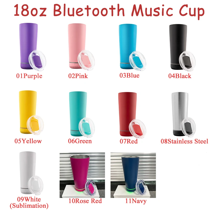 18 унций Новый Умный стакан белые заготовки сублимационная музыкальная бутылка для воды из нержавеющей стали Беспроводная музыкальная чашка вечерние подарочные поставки