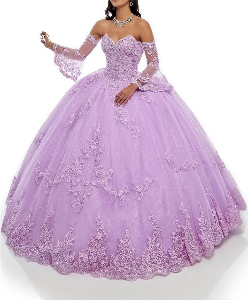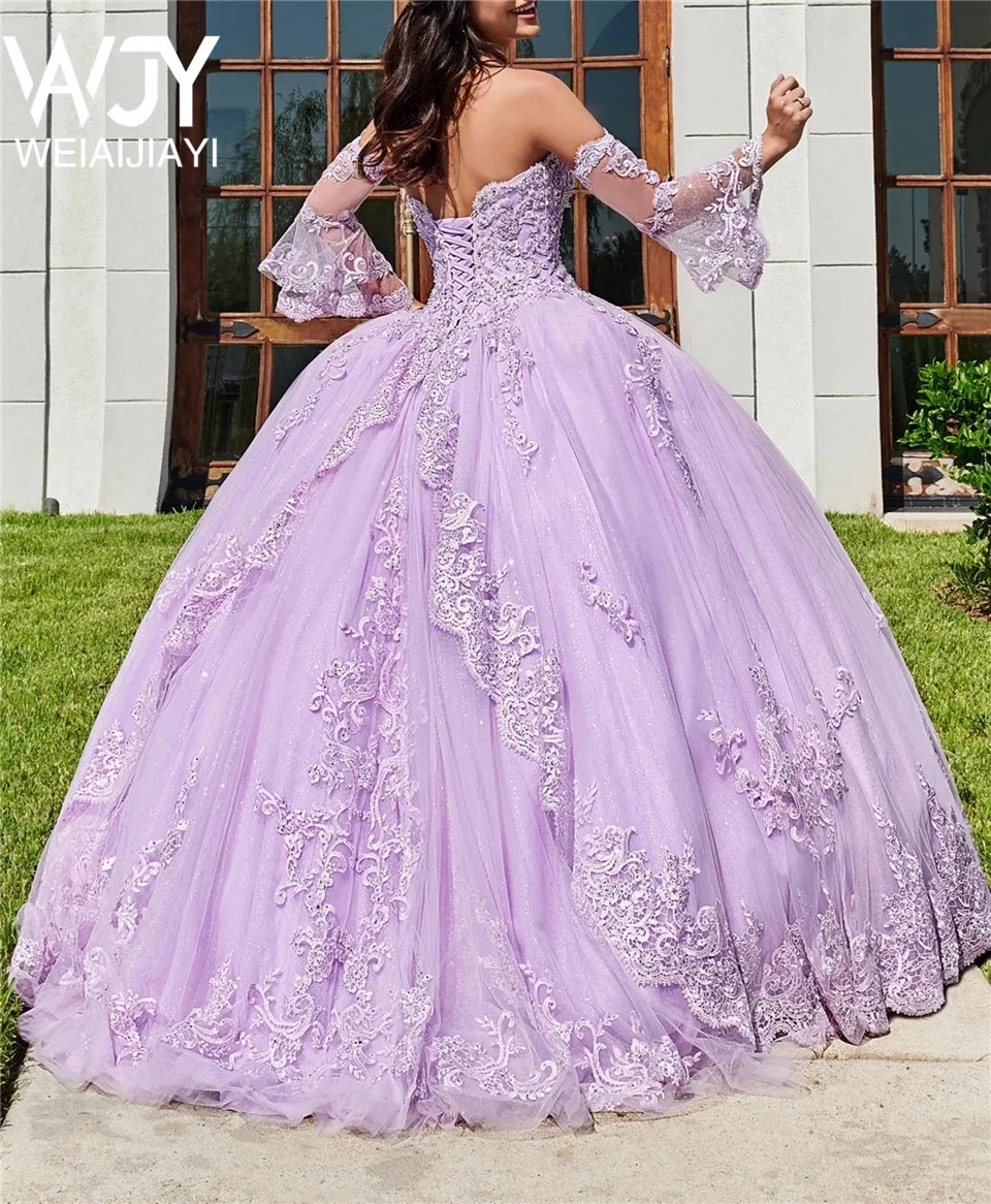 Женское платье для выпускного вечера, сиреневое кружевное платье с аппликацией милой принцессы, бальное платье для 16-15 лет