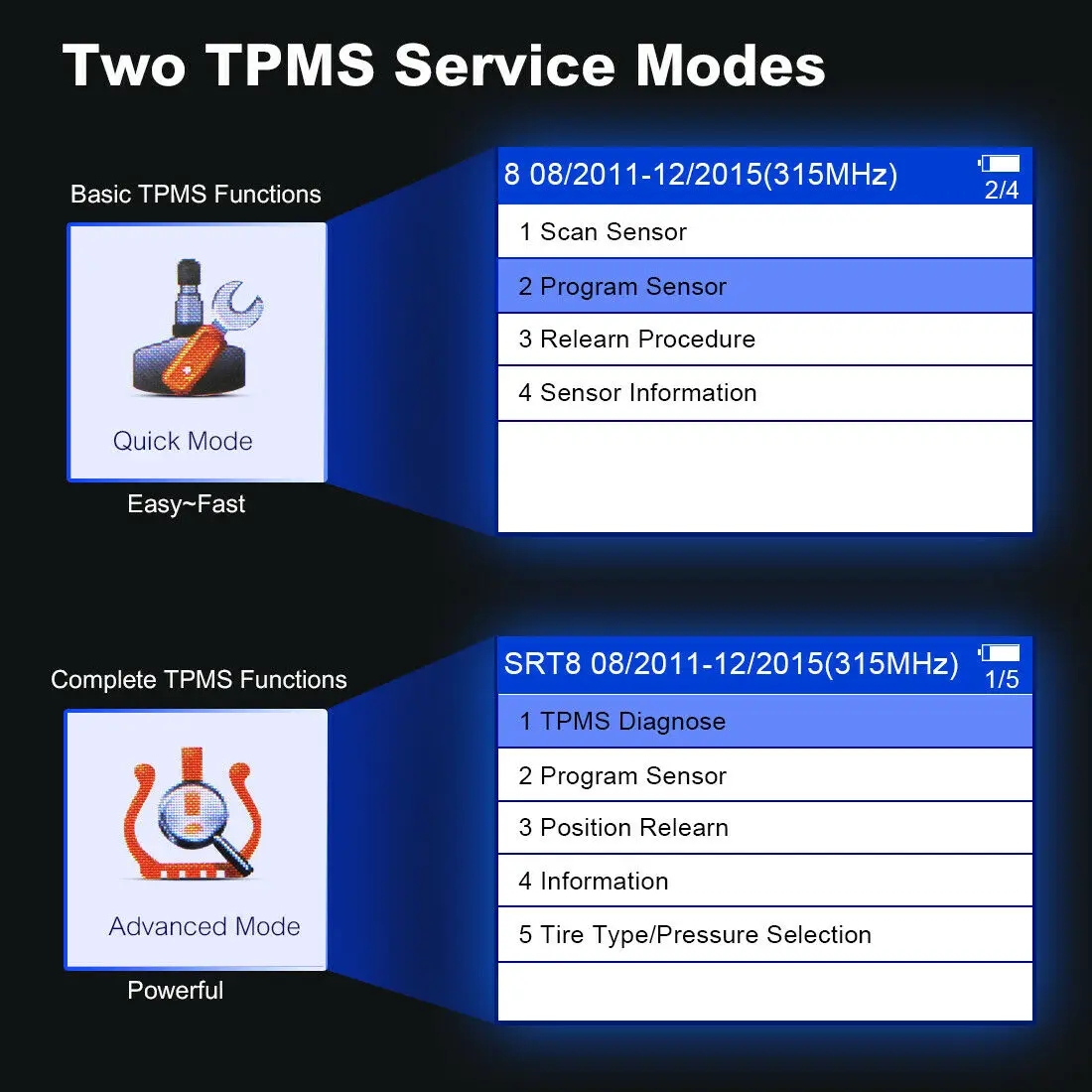 Features 3TPMS diagnose, one step for complete TPMS health check