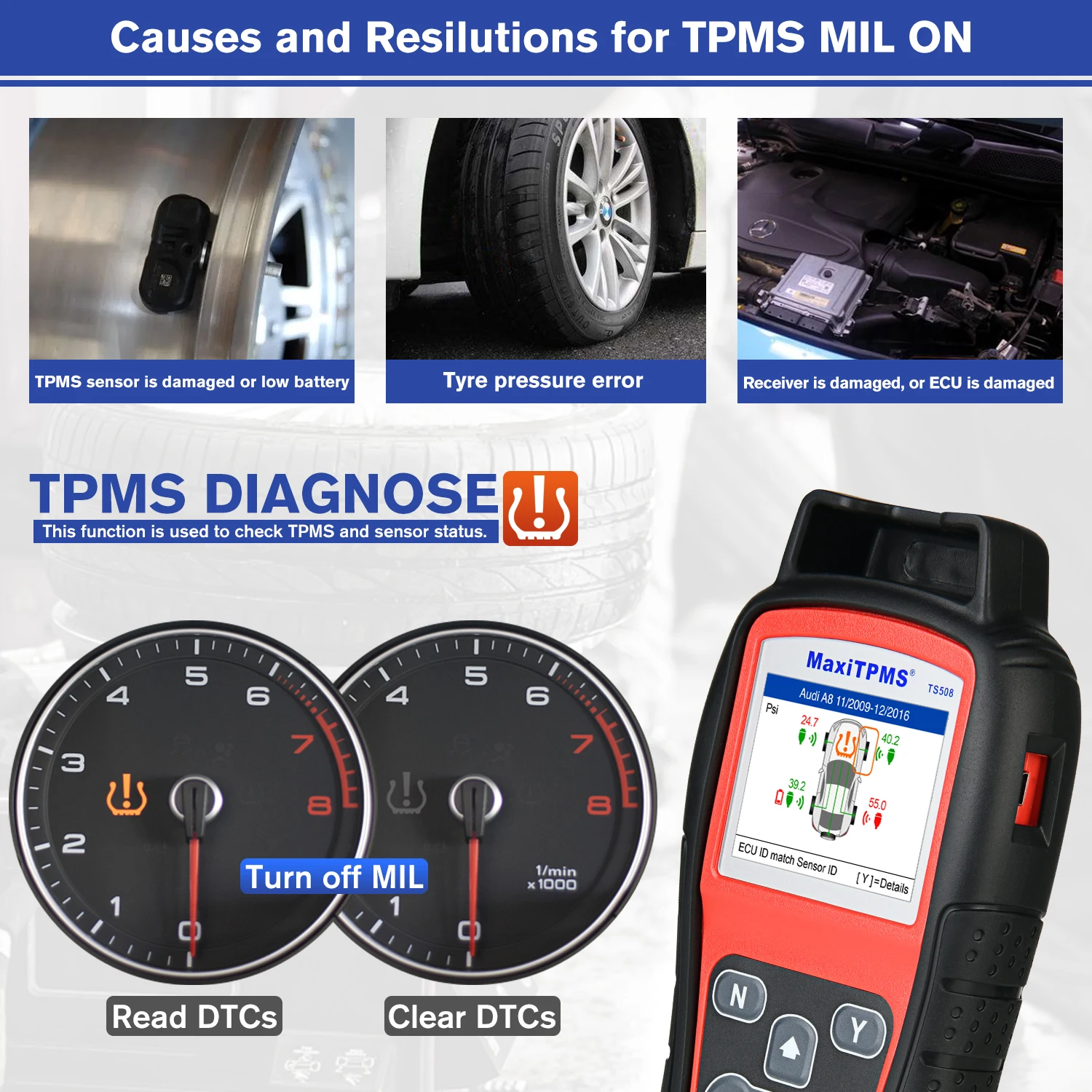 Features 4Read/clear TPMS DTCs; on-screen DTC description