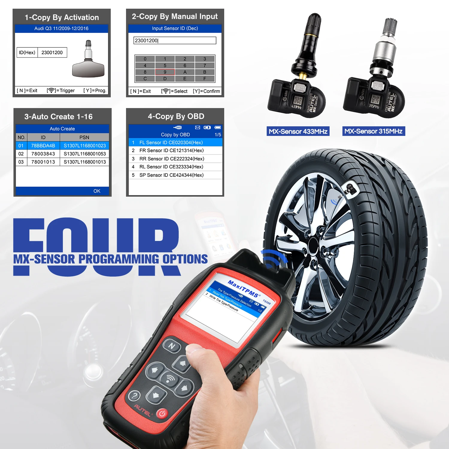 . База данных по транспортным средствам (отечественный, Азиатский и европейский). Автоматический выбор частоты для быстрого сканирования. 2 режима использования. Быстрый режим для быстрой установки предназначен для шин/колесных магазинов. Расширенный режим для диагностики, ремонта и замены TPMS для ремонтных магазинов. Экраны состояния TPMS для легкой диагностики. Показывает идентификацию цвета. Индикатор низкого датчика заряда батареи. Уведомление о коде. Информация-повторные процедуры на касании кнопки помощи. Пакетное программирование-программирование нескольких датчиков с одним касанием (до 16 датчиков одновременно). Программы ECU транспортного средства для изучения идентификаторов датчика и положения. Активирует все магнитные, Частотные и дефляционные датчики с использованием 125 кГц непрерывных или модулированных сигналов. Получает оба сигнала 433 МГц. Считывает/записывает идентификаторы датчика от транспортного средства ECU. Считывает/очищает DTC TPMS и сбрасывает индикатор неисправности светильник. Программы Autel MX-Sensors 433MHz Беспроводная связь. Проверяет дистанционный вход без ключа (брелок) для трансмиссии. Считывает данные, включая идентификаторы датчика, давление в шинах, температуру, состояние батареи.. Номер детали OEM и дополнительная информация. Отображает различные процедуры повторного обучения датчика для различных OEM датчиков. OEM датчик информации дисплей на основе автомобиля Марка/Модель/год. Отображение местоположения OBD для испытательных транспортных средств. Процесс предварительного выбора обеспечивает более быструю активацию и диагностику. Обеспечивает визуальные и звуковые ответы, чтобы подтвердить, что датчики работают должным образом. Определения кода на экране. Невероятно простой в использовании с интуитивно понятной навигацией и пошаговыми инструкциями на экране. Правильный НЧ-сигнал, чтобы предотвратить обманку другими радиочастотными сигналами. Встроенный перезаряжаемый 3,7 v литий-полимерный аккумулятор. Автоматическое выключение для сохранения срока службы батареи. Многоязычная поддержка: английский, французский, испанский и т. Д.. Бесплатные пожизненные обновления в Интернете с помощью usb-порта. Эргономичный дизайн имеет прочный корпус и защитный резиновый ботинок. Цветной дисплей TFT (320X240 точек/дюйм). 8,0 "светодиодный сенсорный экран с разрешением 1024X766P