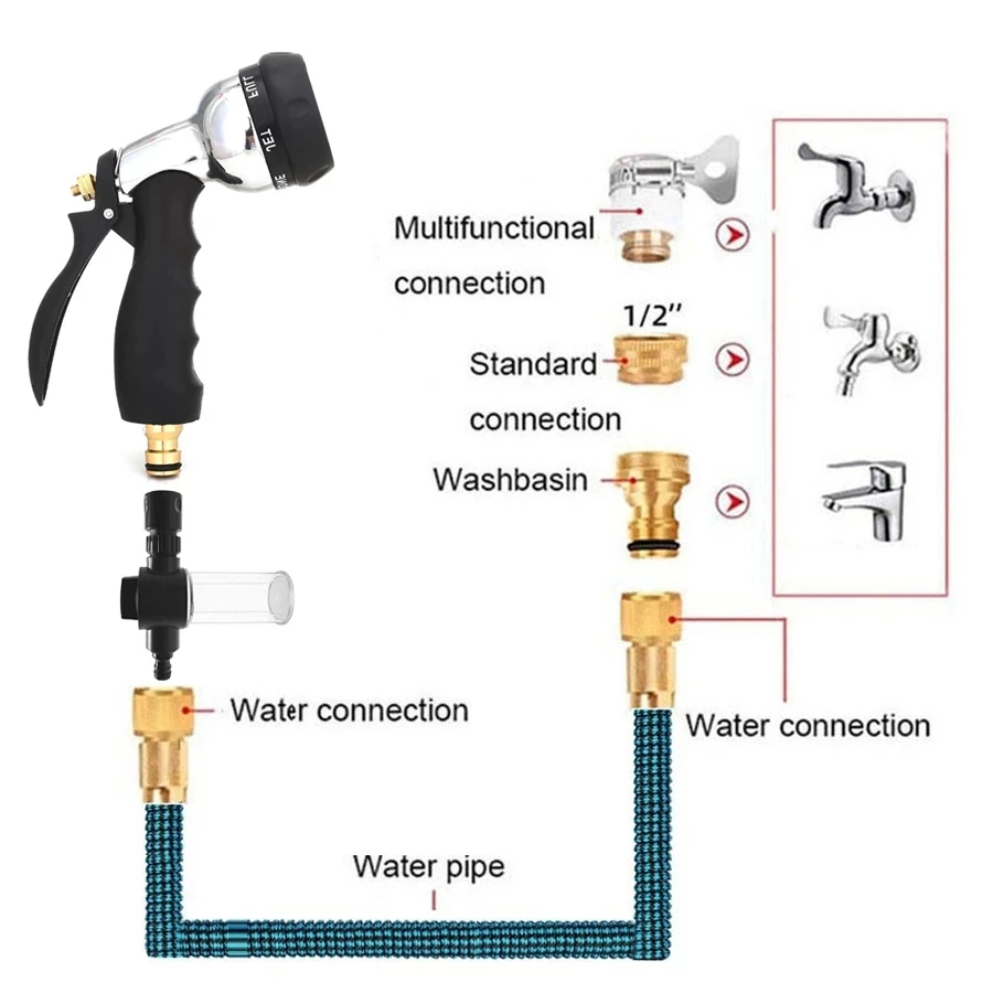 Раздвижной гибкий садовый водяной шланг, водяной пистолет, распылитель высокого давления для автомойки, растения для дома и сада футов