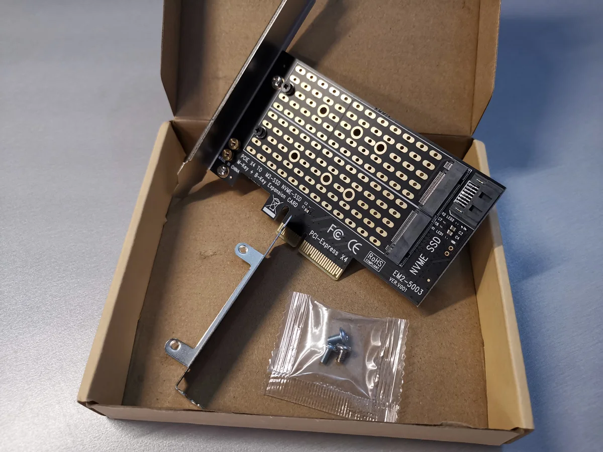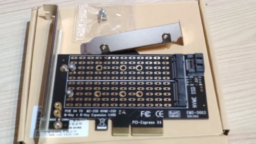 Быстрая доставка. Рабочий переходник. Но есть одно существенное "НО": двойной разъём нерабочий, т.е. работает (по отдельности) каждый из них, но только либо как SATA, либо как PCI-E. Одновременная работа 2х дисков невозможна. Поэтому не вижу смысла переплачивать 50% стоимости за покупку данного переходника. Проще купить переходник либо для PCI-E M.2 диска, либо SATA M.2 диска (в зависимости от того, какой диск под рукой) и сэкономить 50% стоимости. Будущим покупателям на заметку.