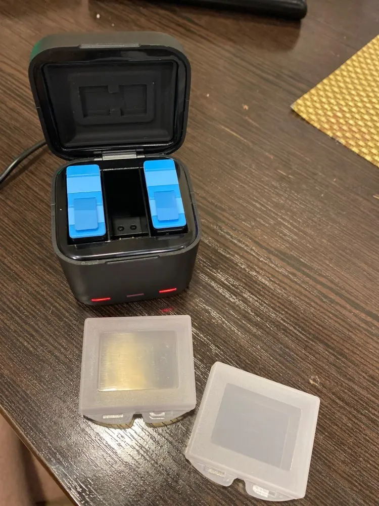 Ёмкость около 1000 mAh у аккумуляторов, но тоже не плохо за эти деньги. У моего нового аккумулятора от GoPro оригинала 1400 mAh ёмкость была, хотя на самом ёмкость 1750 mAh указана. Зарядка прикольная к аккумуляторам, вся светится красиво. У зарядки крышка с магнитом и напоминает шкатулку ) Принёс курьер. Доставка была долгая, больше двух месяцев.