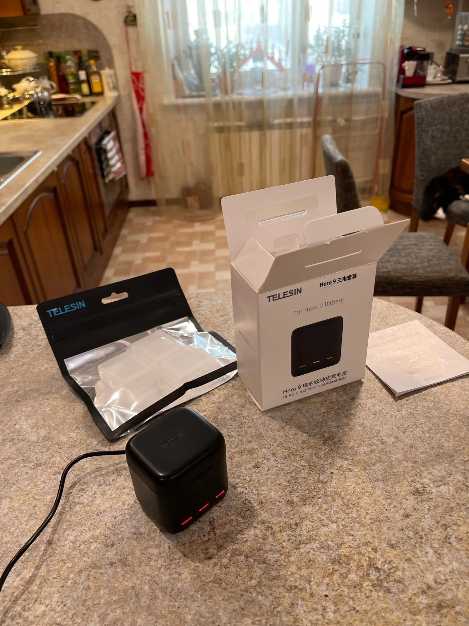 Хорошая упаковка, заказывал зарядку и 2 аккума. в комплекте лежали так же коробочки пластиковые для аккумов заряжает все отлично, индикаторы работают. качество на уровне. аккуумы еще не тестил на длительность работы но гопро 9 с ними работает. проблем нету но доставка очень долгая. 38 дней шла посылка и почему то неделю на таможне лежала в рф