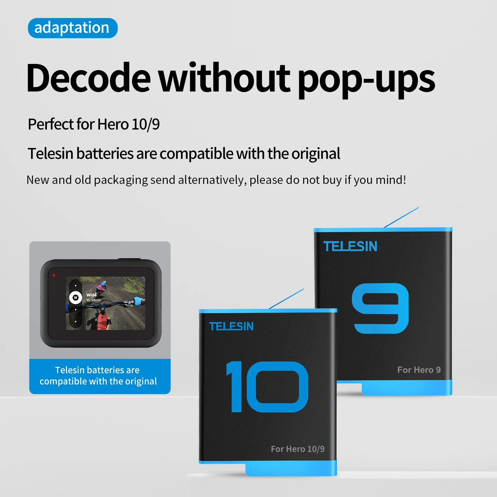 Аккумулятор TELESIN 1750 мА ч, для GoPro Hero 10, 3 режима, светодиодный светильник, зарядное устройство, TF-карта, аккумулятор для аксессуаров GoPro Hero 9