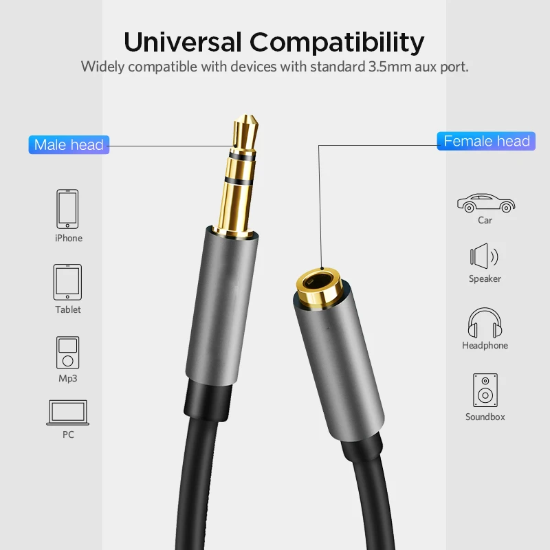 Удлинительный аудиокабель Ugreen 3,5 мм, штекер-гнездо, кабель для ...