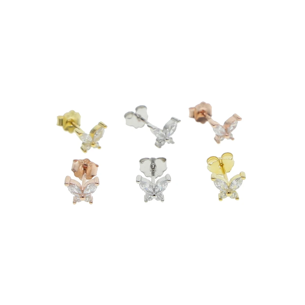 2021 Новый миниатюрный маленький CZ Сережка-гвоздик в форме бабочки 100% стерлингового серебра 925 пробы бринко паве 5A кубический цирконий 5 мм для девочек милые ювелирные изделия