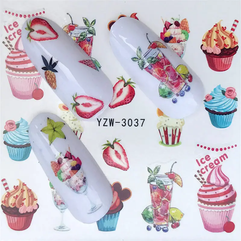 1 лист наклейка для водяного переноса изображения на ноготь наклейки фруктовый крем торт кошка красота дизайны украшения DIY цветные тату наконечники