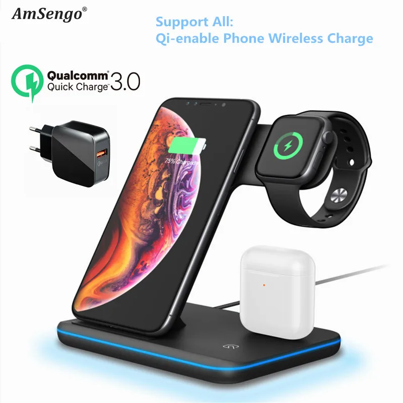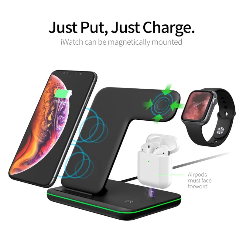 Беспроводное зарядное устройство 3 в 1 Qi 15 Вт док-станция для быстрой зарядки для Apple iWatch 7654 AirPods Pro iPhone 131211XS зарядное устройство