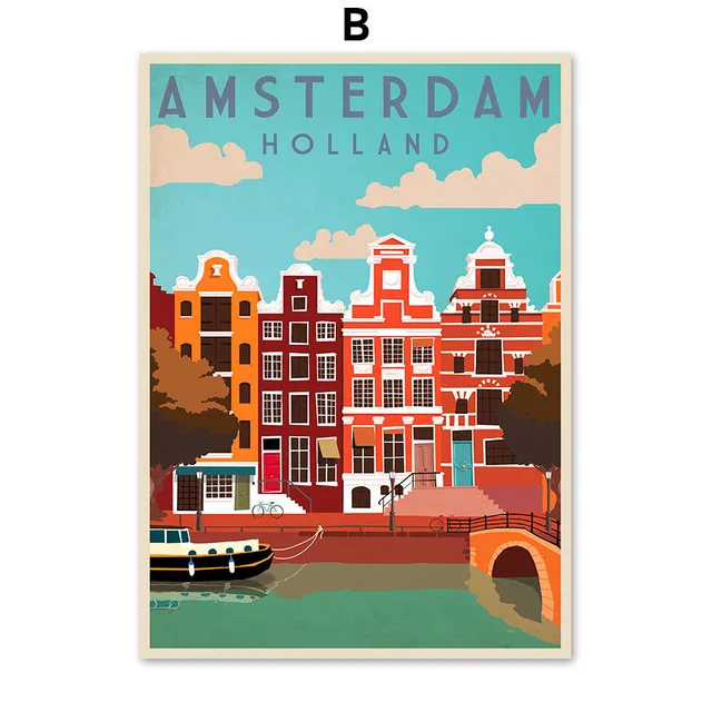 Винтажный постер известного города, здание, пейзаж, настенная Карти...