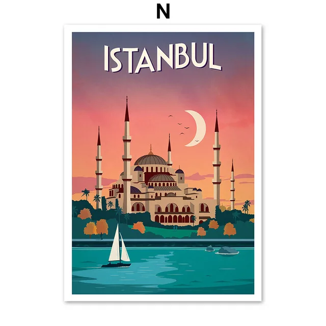 Винтажная Картина на холсте с изображением знаменитого города