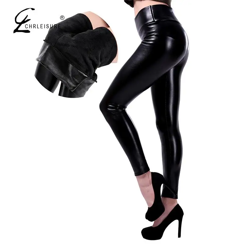 CHRLEISURE зимние кожаные леггинсы для женщин с высокой талией тепл...