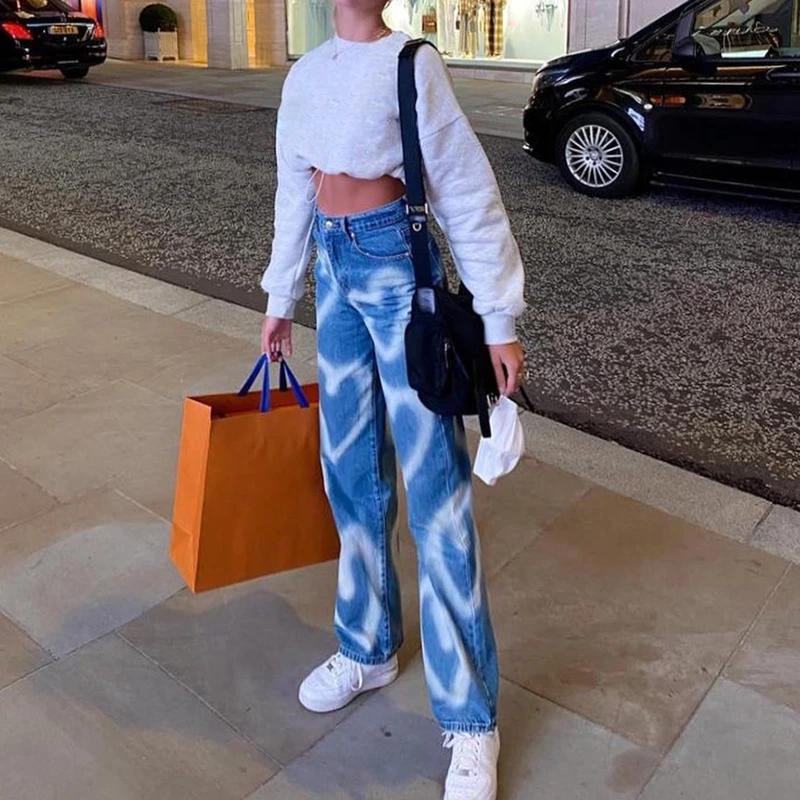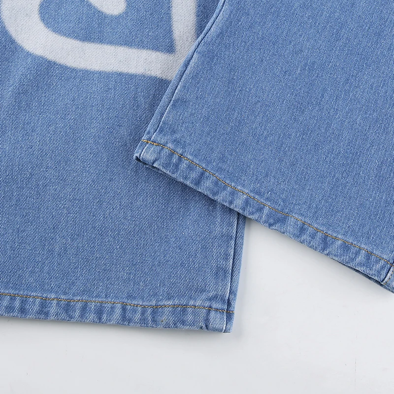 Винтажная одежда Y2K джинсы с рисунком сердца граффити мешковатые E...
