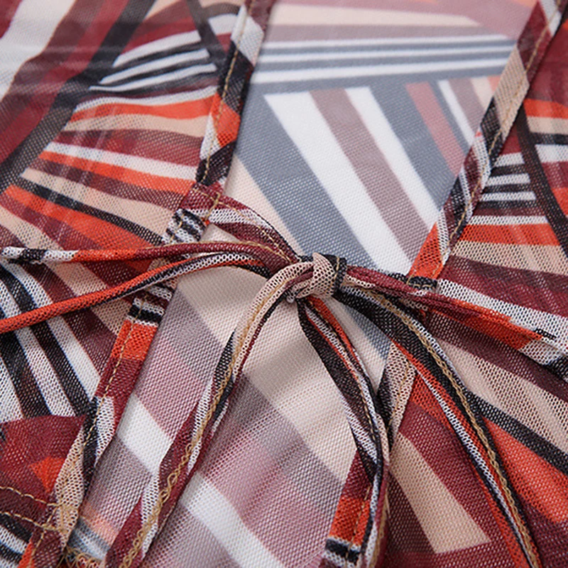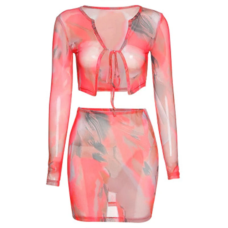 Женский винтажный комплект из 2 предметов, привлекательный сетчатый кружевной кроп-топ с V-образным вырезом и мини-юбка, подходящий комплект, женская одежда