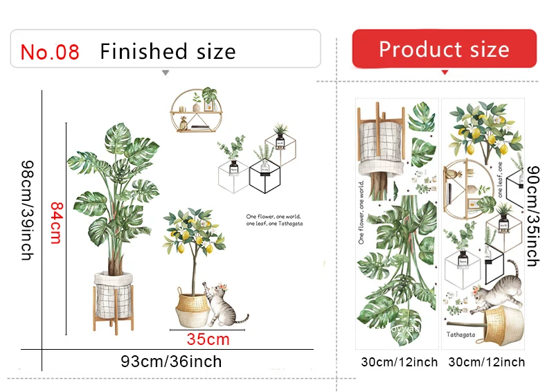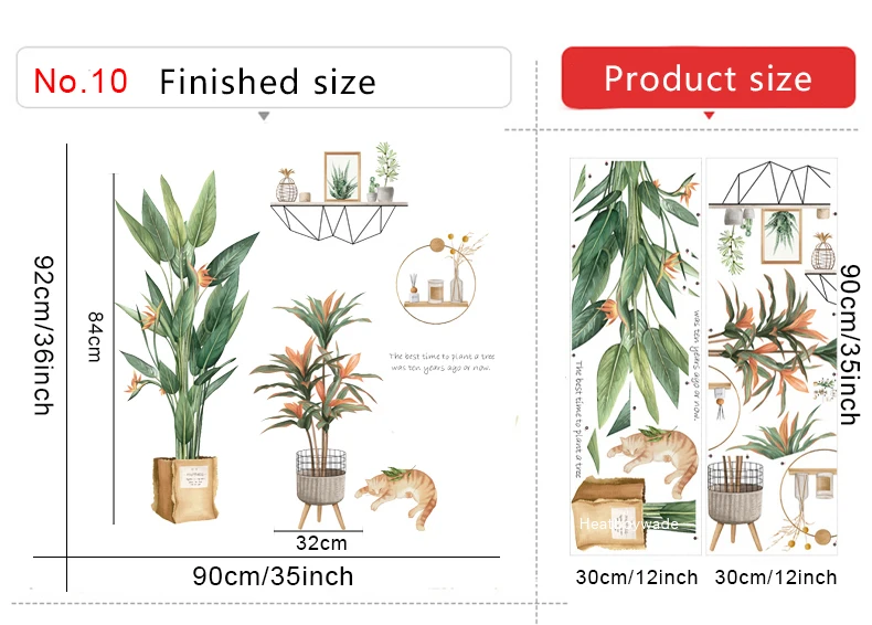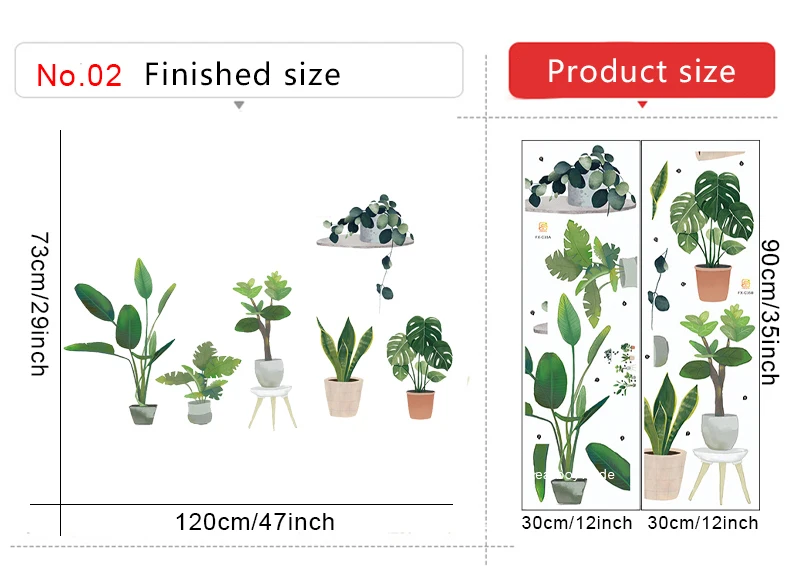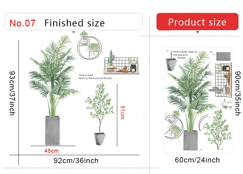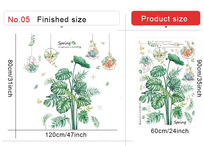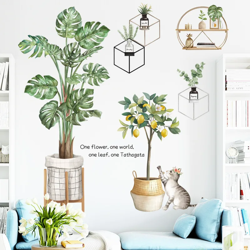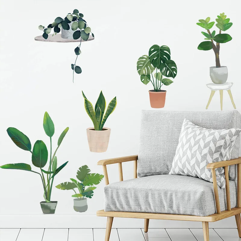 Настенные наклейки в скандинавском стиле с большими зелеными листьями в горшках для домашнего декора, съемные виниловые настенные наклейки для гостиной, спальни, настенные декорации, фрески