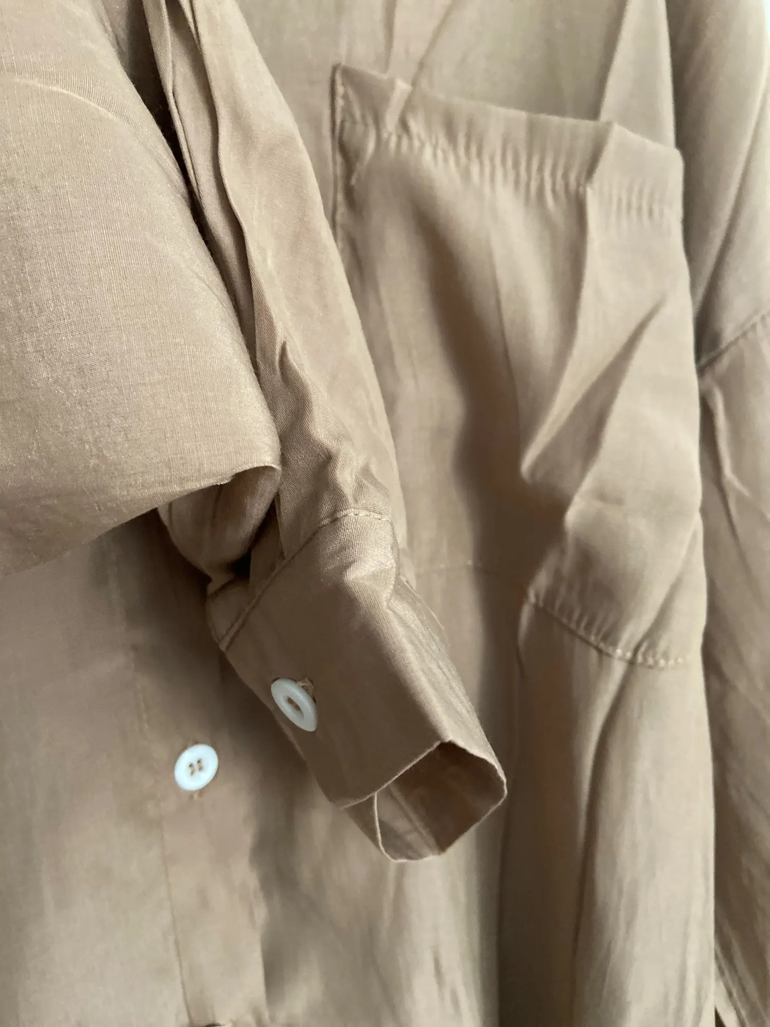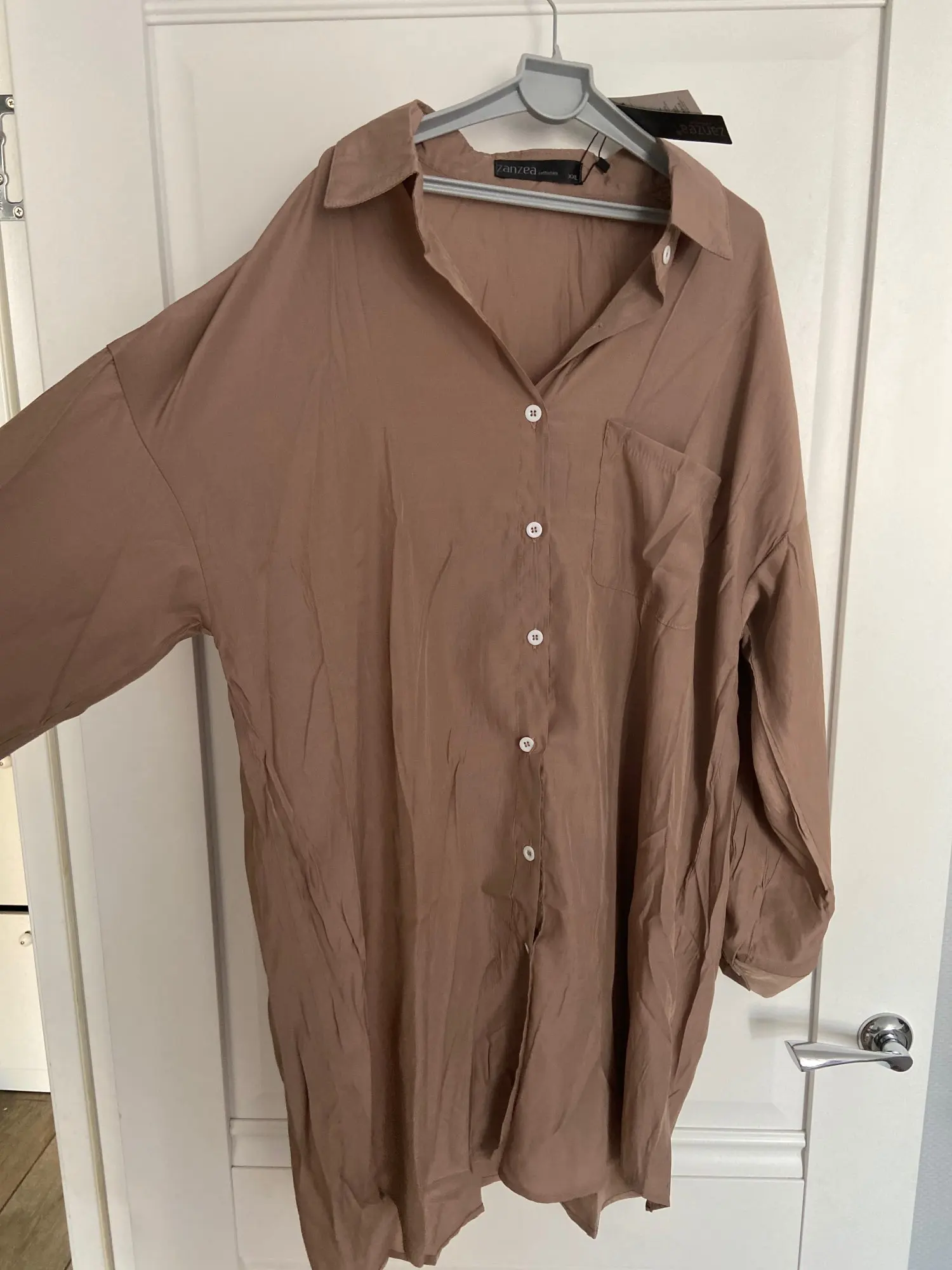Это никак не может быть платьем. Это рубашка. Очень и очень тонкая и легкая, как перо, наверное) Чтобы смотрелась, как на модели нужен рост не больше 1,50 и на размер xxs взять xxl. На российский 52 размер xxl сел как слегка оверсайз рубашка. Как платье его просто не одеть, если только под низ велосипедки)))