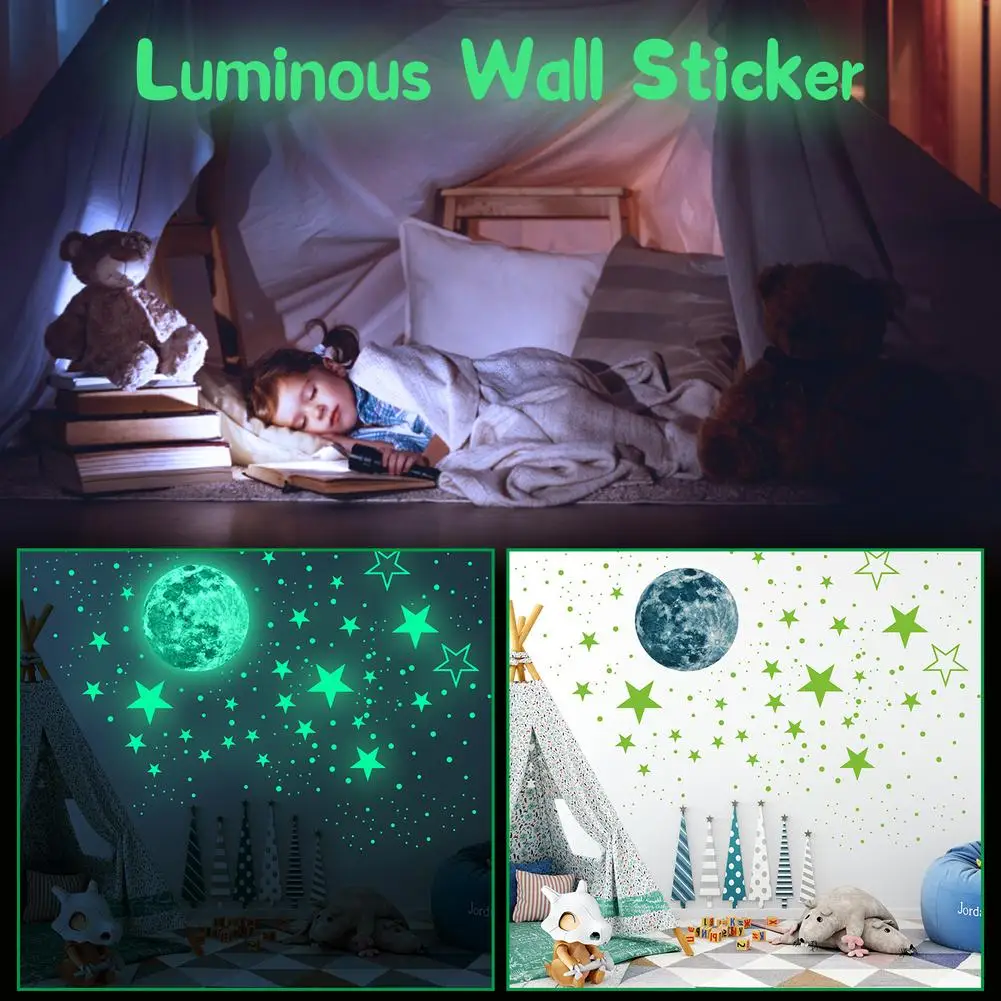 Светящиеся наклейки на стену в виде луны и звезд, 435 шт., флуоресцентные наклейки, домашний декор, потолочные Настенные украшения для детской комнаты, светящиеся наклейки